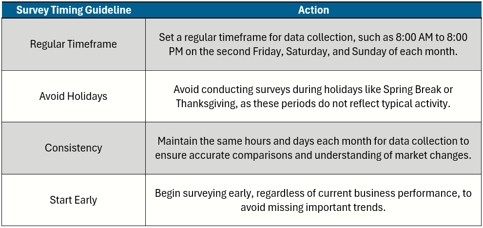 The ‘Start Early’ guideline merits further context. I’ve seen companies 'panic-survey' when they’ve already hit the ‘intensive care’ status. While better late than never, you’ll only get a snapshot in time, lacking the context of whether your piece of the pie has been changing over time and/or the size of the pie overall.